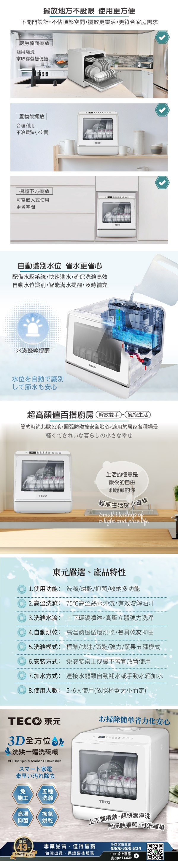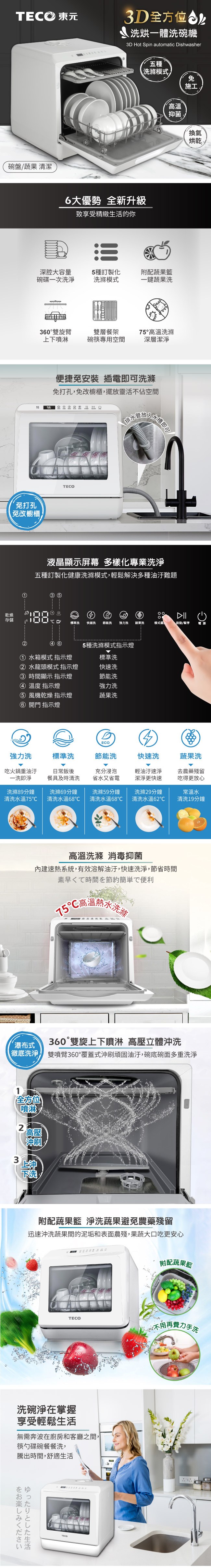 【TECO東元】3D全方位洗烘一體全自動洗碗機