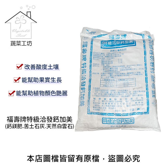 【蔬菜工防】福壽牌特級洽發鈣加美(鈣鎂肥.苦土石灰.天然白雲石)