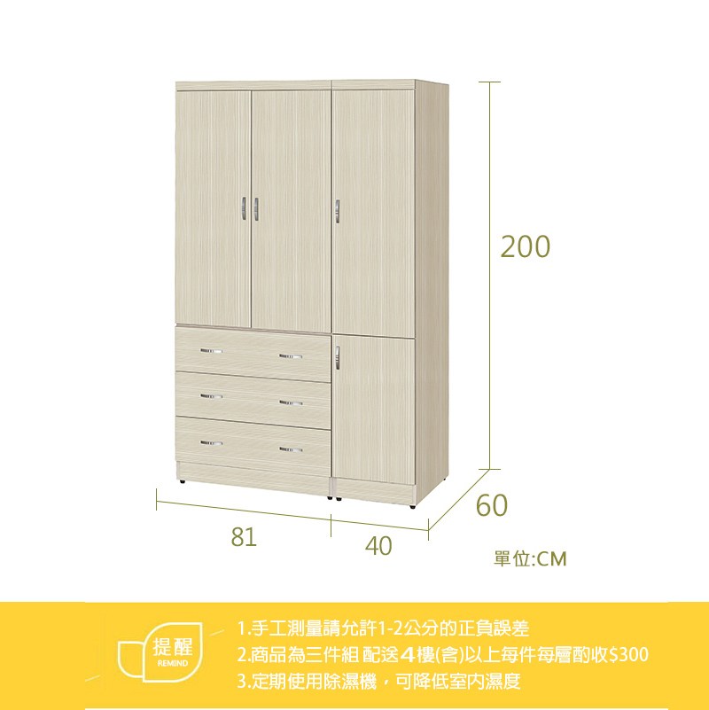 此賣場僅販售4x7附鏡衣櫃 不包含其他情境商品此商品為3件組配送4樓(含)以上每件每層酌收$300搬運費
