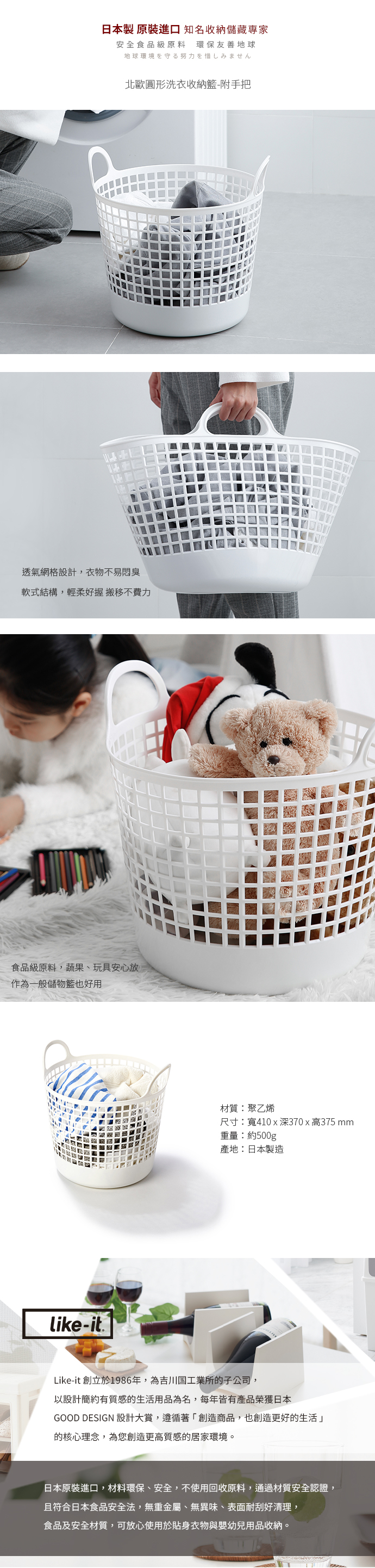 Like-it 手提洗衣籃 白