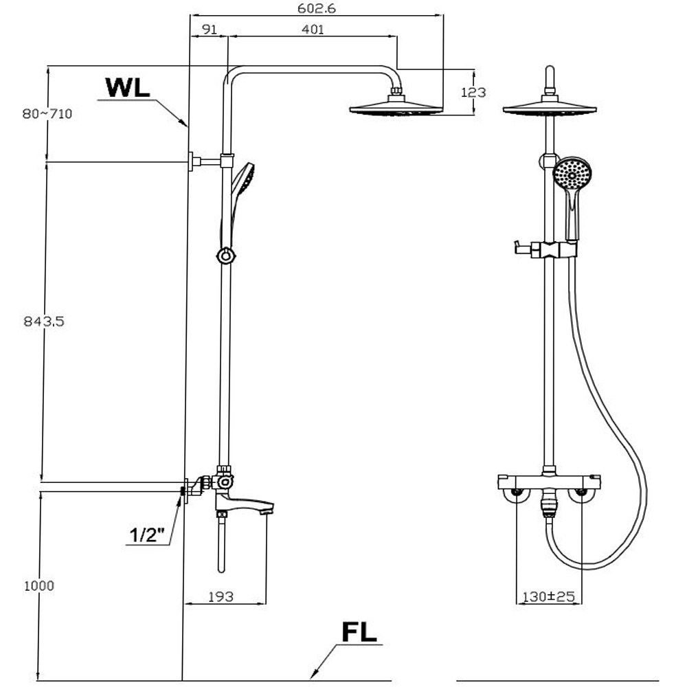 ->購買花灑類產品水壓環境一定要有3層樓差,水壓太小,出水流量會有影響,花灑類的產品感受會更明顯,因此建議水壓達到3層樓差或是1.5KG以上的水壓,安裝淋浴水龍頭產品,才能擁有舒適的洗澡感受。如果水壓低於1.5KG可能會影響恆溫水龍頭的穩定性,不建議使用