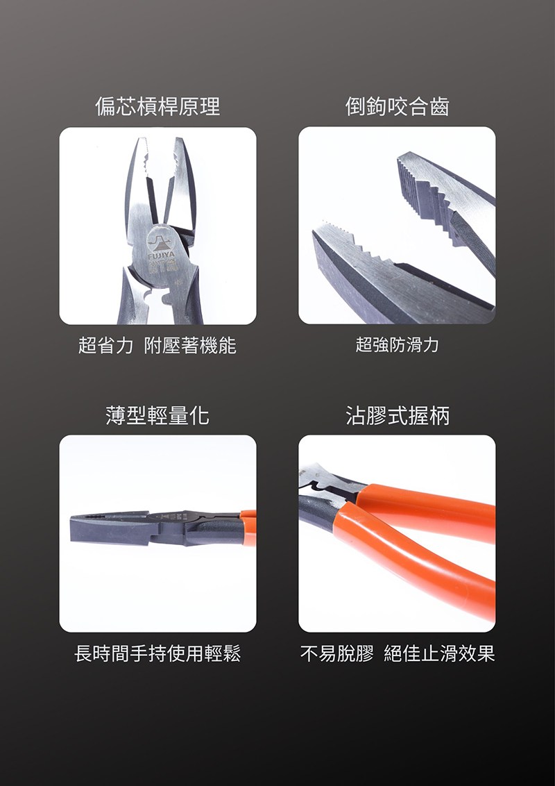 【FUJIYA日本富士箭】膠柄鋼絲鉗-附剝線孔 175mm