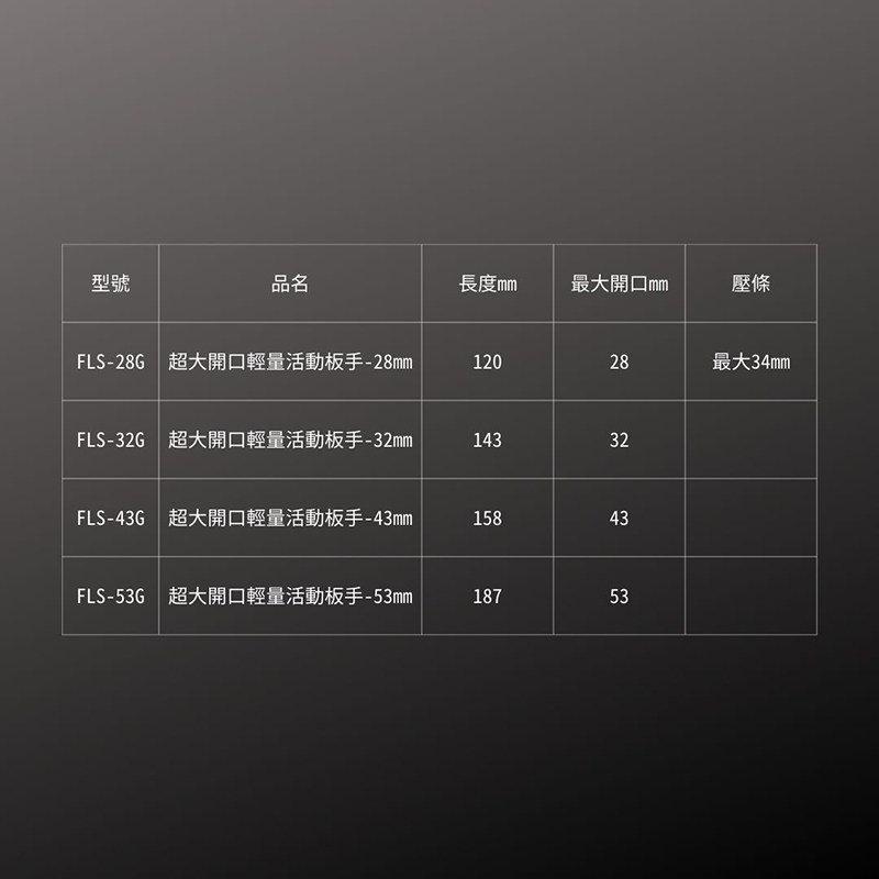 超大開口輕量活動板手-53mm(FLS-53G)