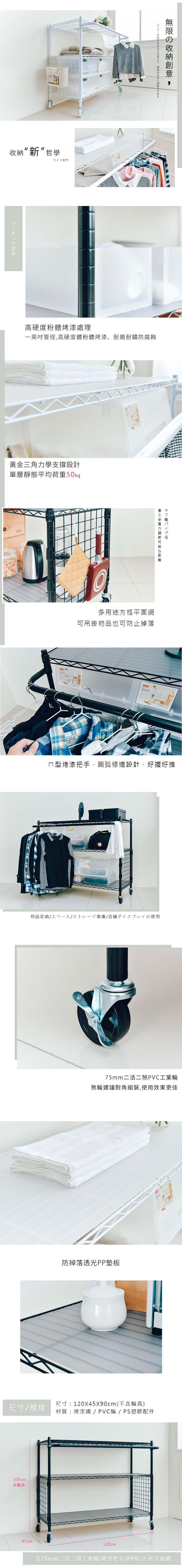【dayneeds】輕型 120x45x90cm 烤漆三層推車架黑色
