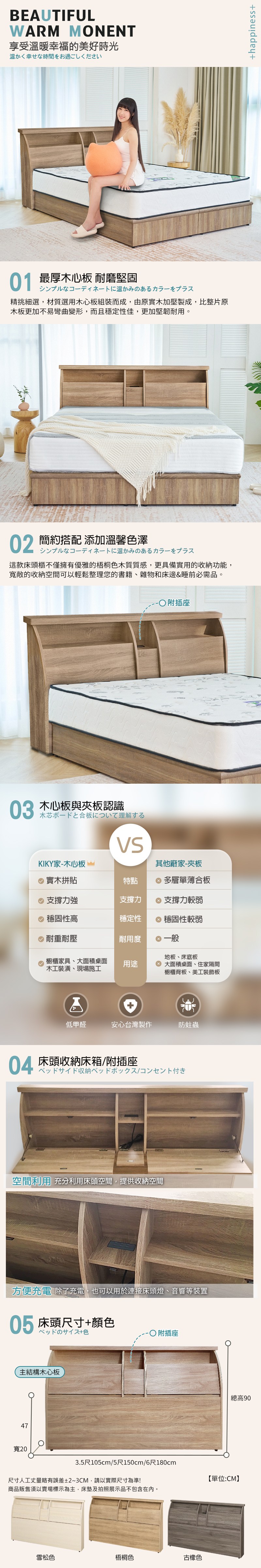 【IHouse】日系夢幻100 夜燈插座 房間2件組(床片+強化底)-雙人5尺
