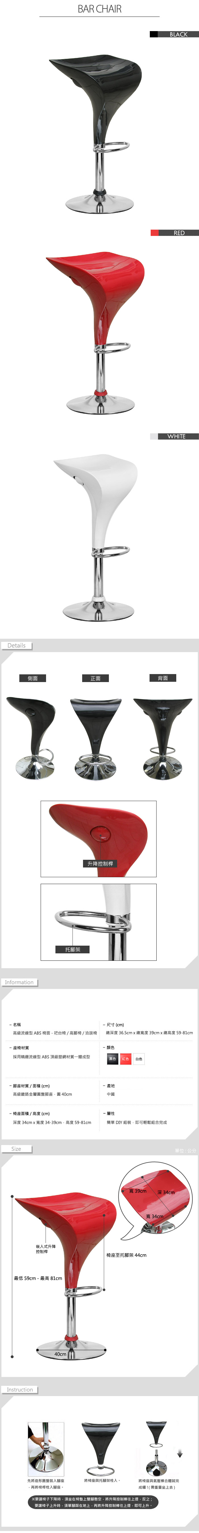 ◆商品品名:高級精緻流線型ABS椅面-吧台椅/吧檯椅/高腳椅/洽談椅/會客椅(三色可選)