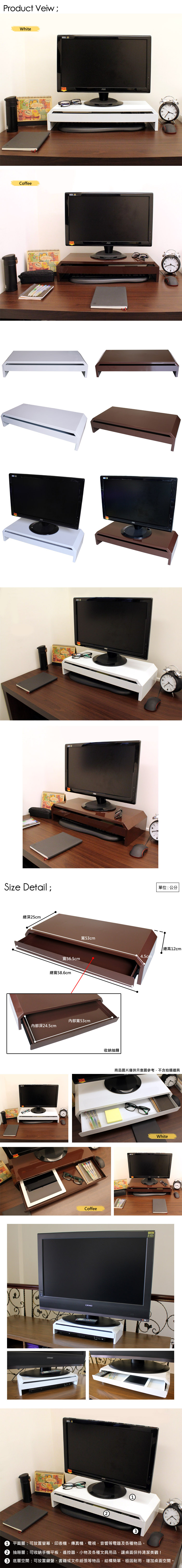 ◆[鐵板製]桌上型-抽屜螢幕架,完美空間收納,增加桌面空間的優美設計,(安全角弧形導角設計),比一般木製置物架更加穩固耐用。