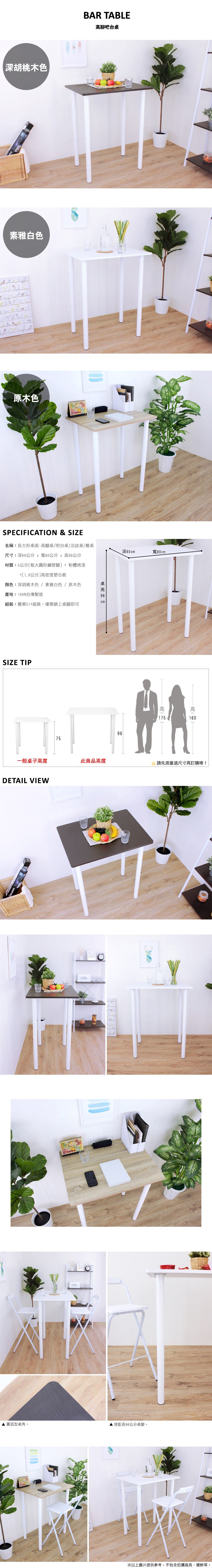 ◆桌面[60公分x80公分]長方形高腳桌/吧台桌,桌角設計為圓弧型,使整體造型無銳角。
