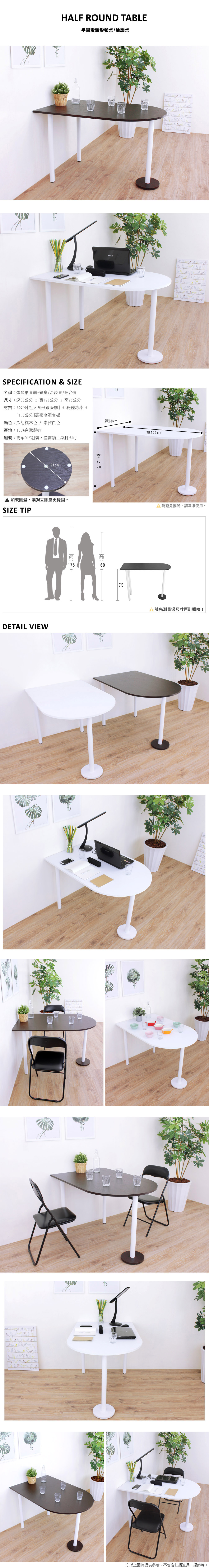 ◆蛋頭形桌面,深度80公分,寬度120公分,高度75公分。