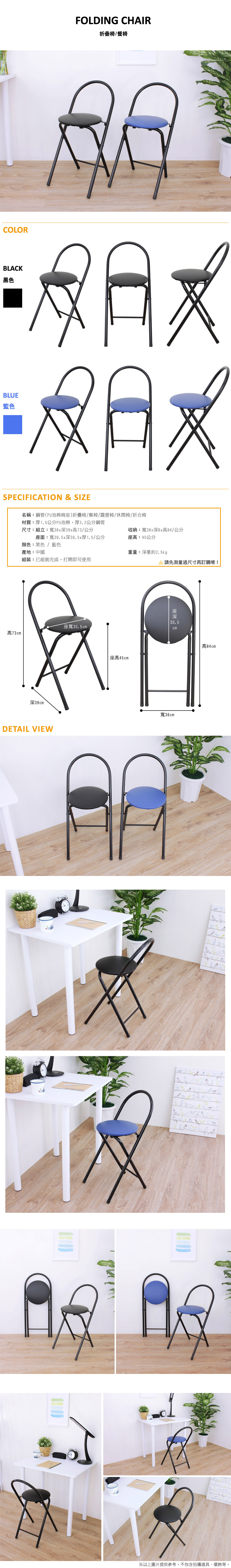 ◆鋼管中背(PU泡棉椅座)折疊椅,造型特別,人見人愛,有黑色及藍色。
