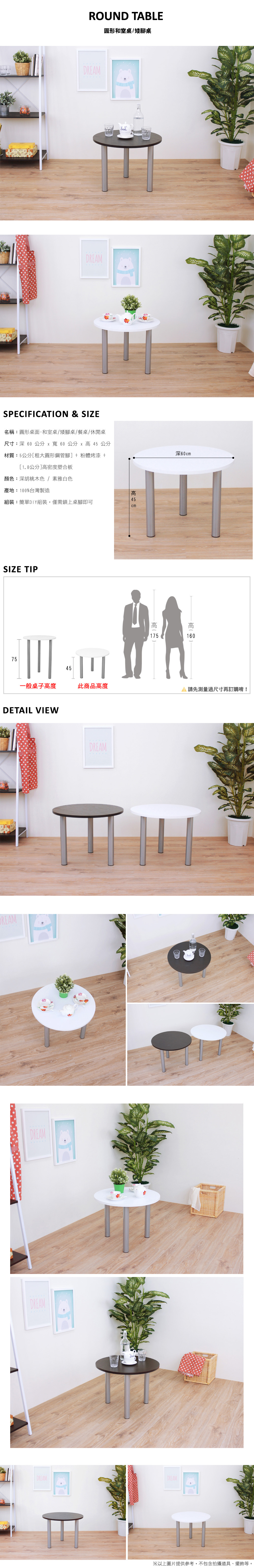 ◆圓形桌面,寬度為60公分,高度為45公分。
