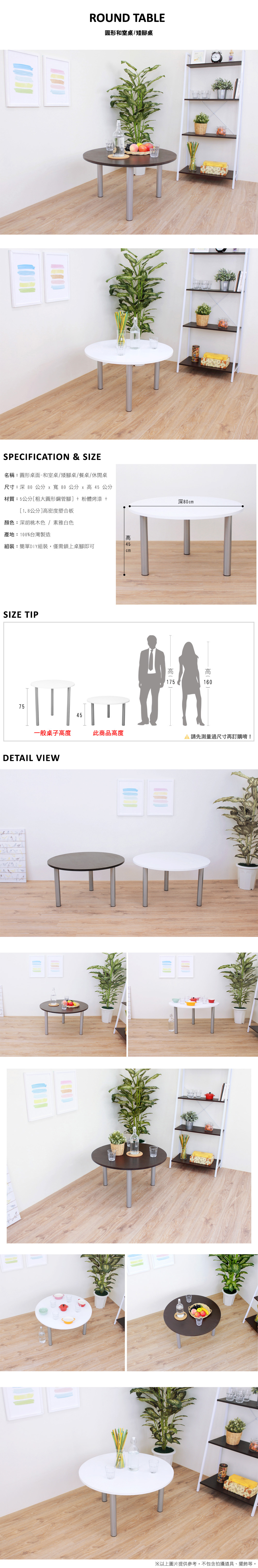 ◆圓形桌面,寬度為80公分,高度為45公分。