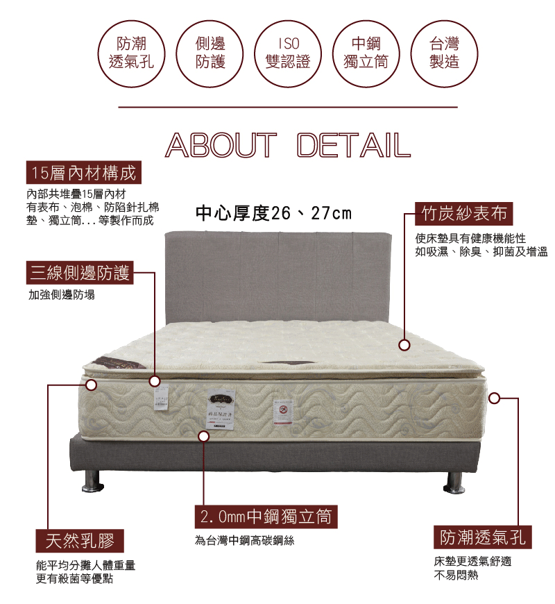 【本木】N01石墨烯竹炭三線獨立(表床墊-雙大6尺雙大6尺
