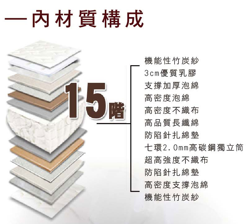 【顛覆設計】抗菌表布 乳膠 竹炭 舒適健康床墊(單大3.5尺)