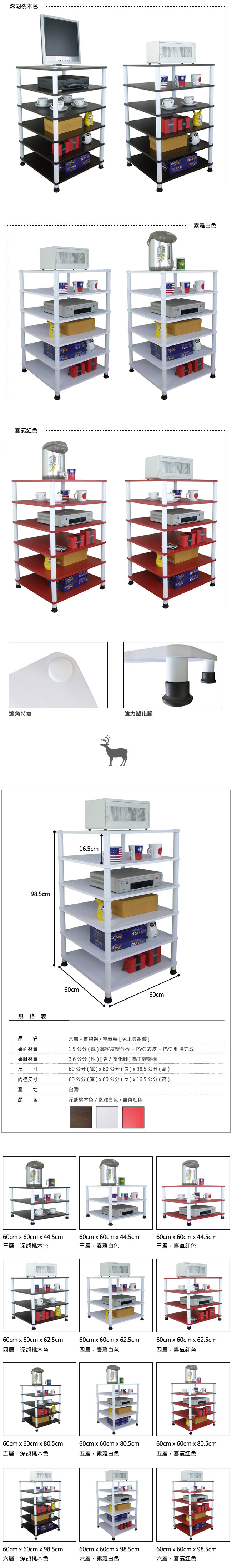 【頂堅】六層收納架/置物架/電器架-60x60公分-三色可選喜氣紅色