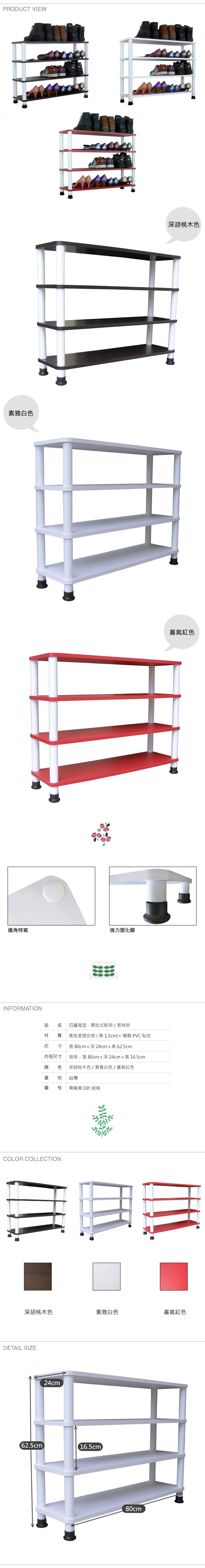 ◆商品品名:80公分(寬)四層[寬型]開放式鞋架/置物架【免工具★DIY】
