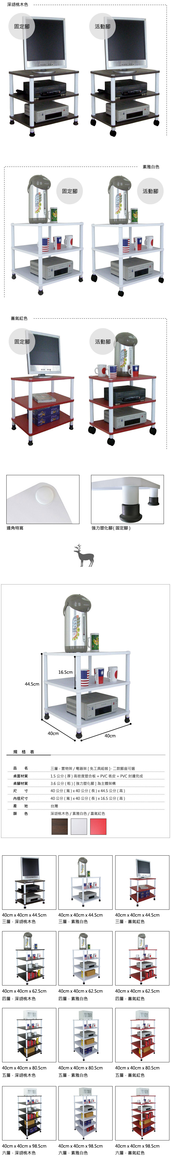 【頂堅】40公分[寬]三層置物架/收納架-三色可選(二款腳座可選)