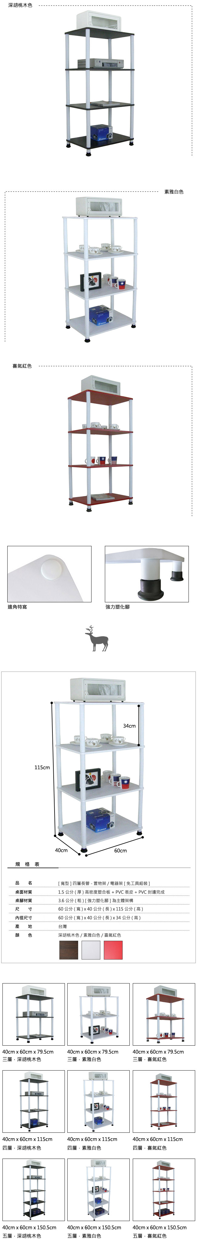 ◆商品品名:60公分(寬)四層-置物架/收納架/電器架[免工具★DIY]
