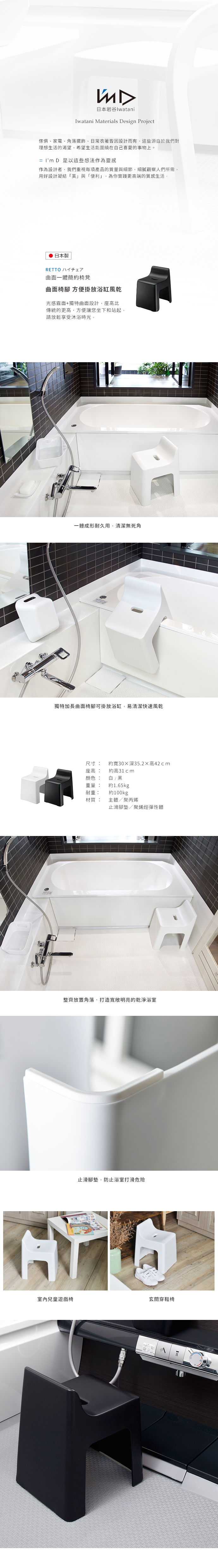 點我下載【日本岩谷Iwatani】RETTO曲面一體簡約室內/穿鞋/浴室椅凳-黑