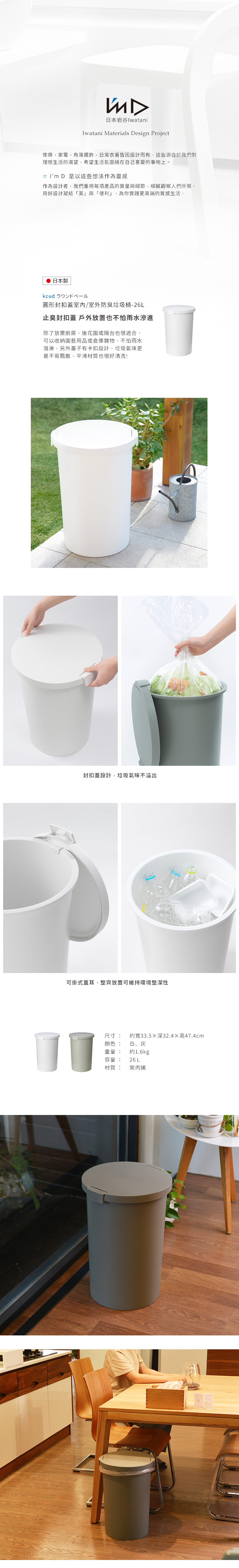 日本Like-it 密封防臭按壓式垃圾桶 25L 白