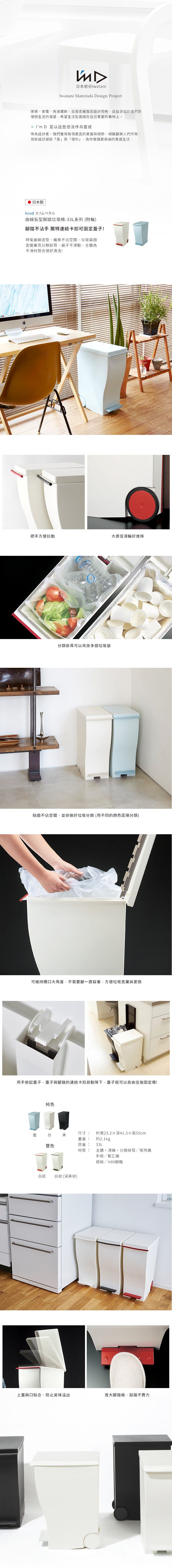 點我下載【日本岩谷Iwatani】雙色曲線長型可分類腳踏垃圾桶(附輪)-33L白棕
