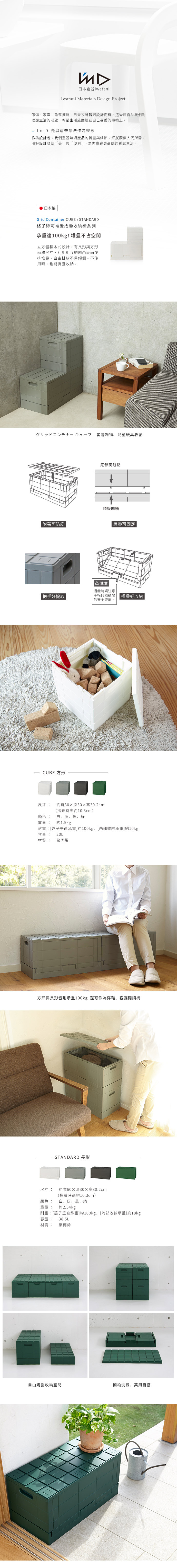 【日本岩谷Iwatani】Grid格子磚可堆疊摺疊收納椅-38.5L白
