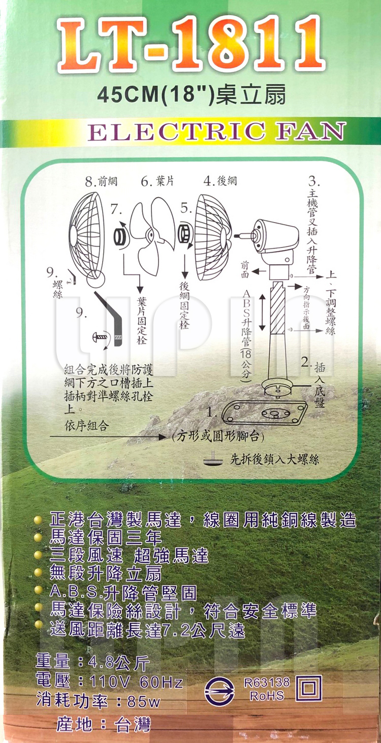 LIEN TUNG 聯統18吋桌立扇/涼風扇 LT-1811~台灣製造