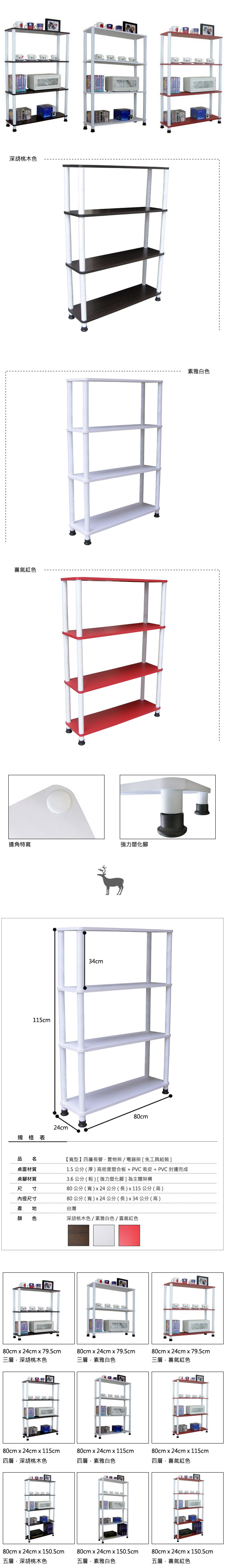【頂堅】四層長管-置物架/收納架-寬80x深24公分-二色可選深胡桃木色