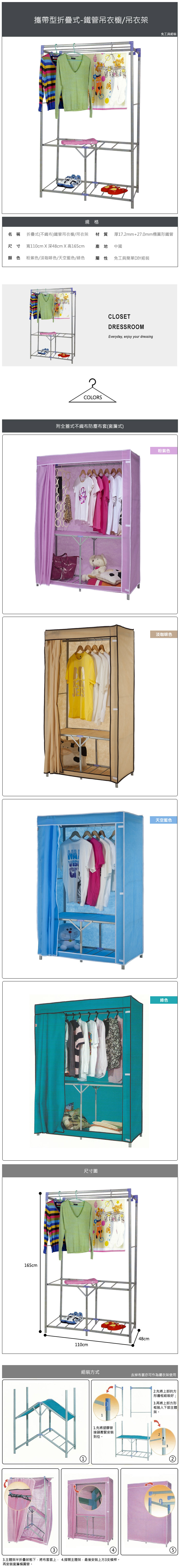 ◆商品品名:[110公分寬]攜帶型折疊式-鐵管吊衣櫥/吊衣架(附全蓋式防塵布套)