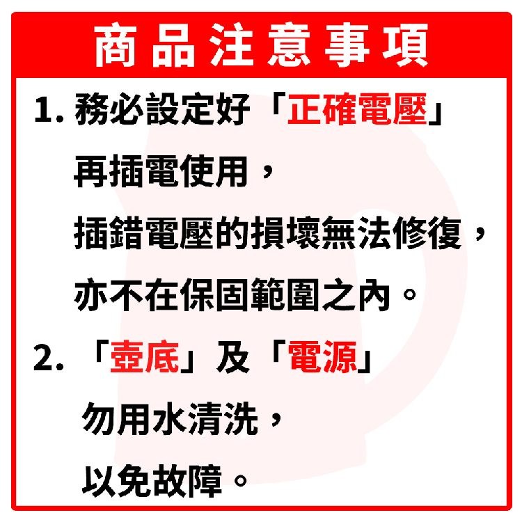 2. 「壺底」及「電源」勿用水清洗,以免故障。