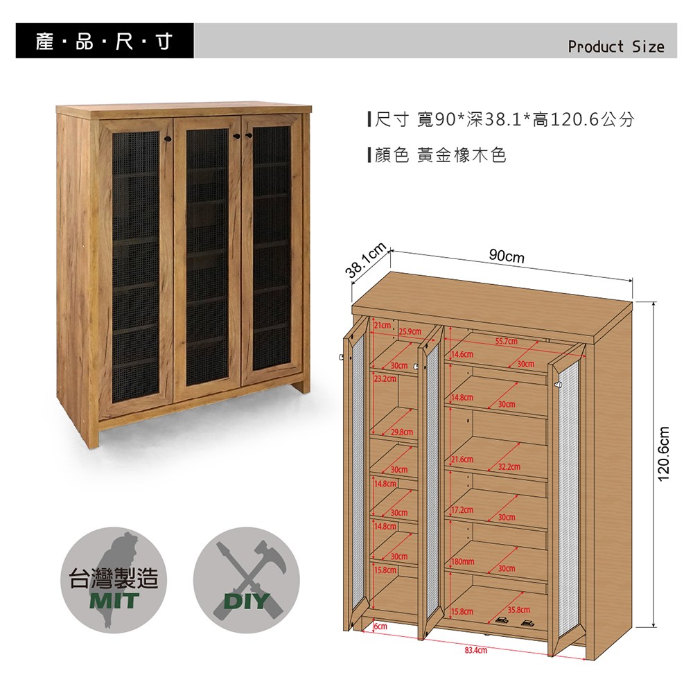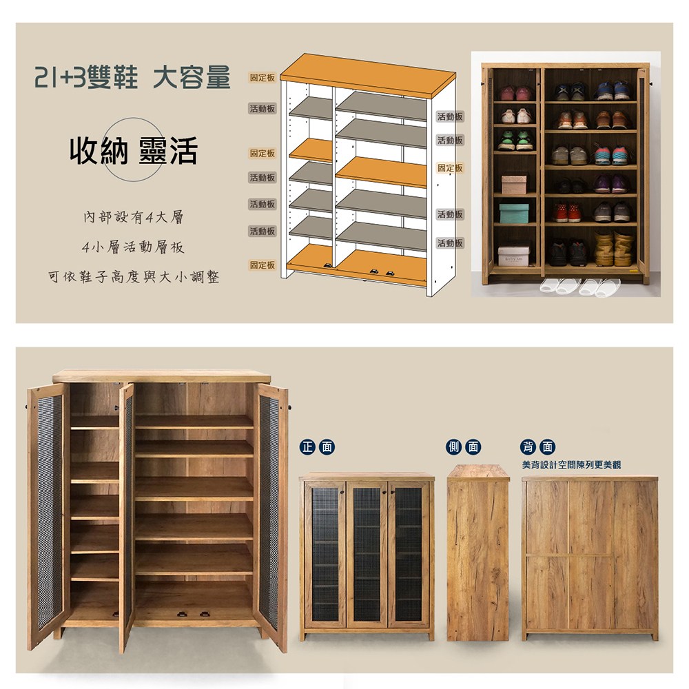 黃金橡木色款 五層大空間 採E1板材 高成本的美背處理!!