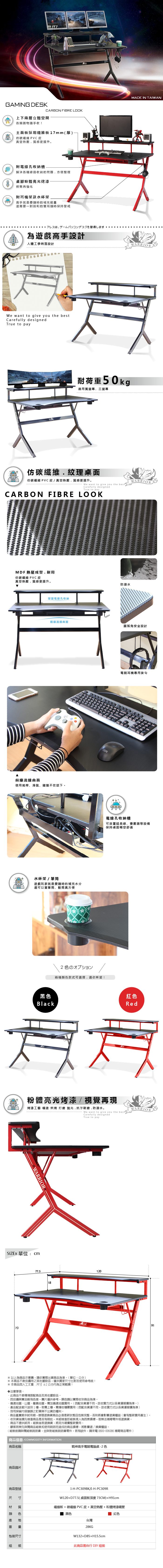 【RICHOME】戰神高手電競電腦桌(雙杯架款)-2色紅色
