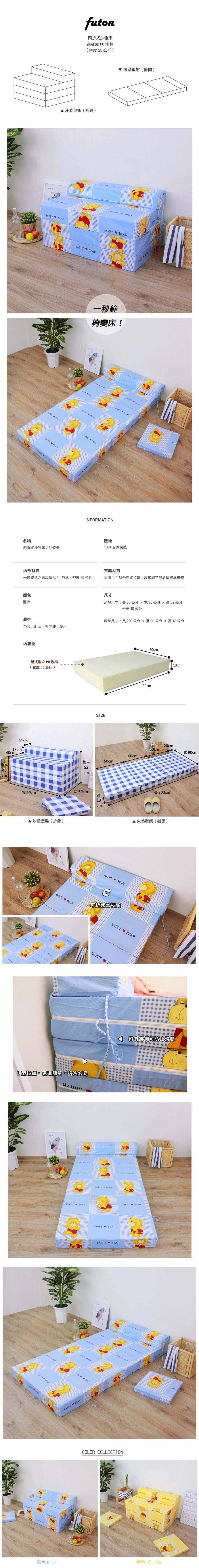 ◆商品名稱:【快樂小熊】坐高40床長200公分-四折式沙發床/沙發椅