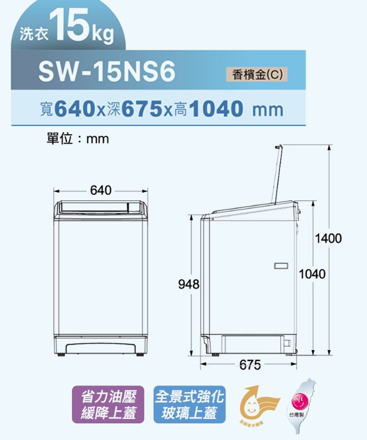 SANLUX台灣三洋15kg超音波定頻單槽洗衣機 SW-15NS6~含基本安裝+舊機回收