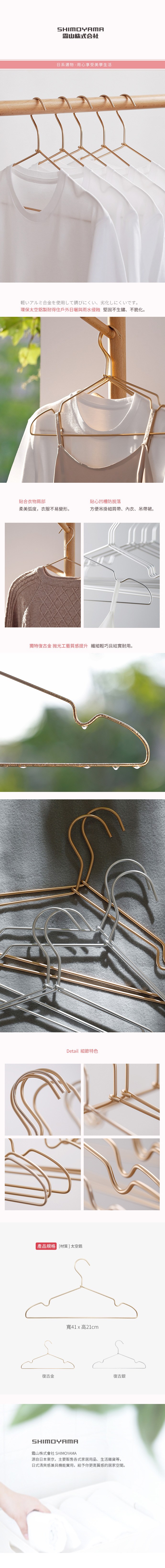 【日本霜山】耐候防鏽太空鋁金屬衣架-12入復古金