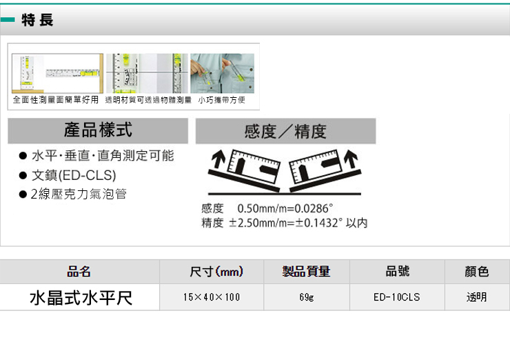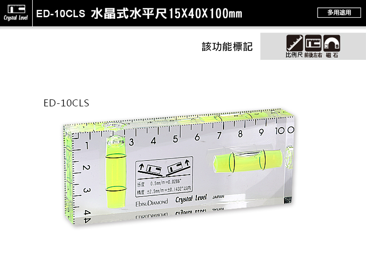 Ebisu DiAMOND Mini系列 水晶水平尺 ED-10CLS 1個