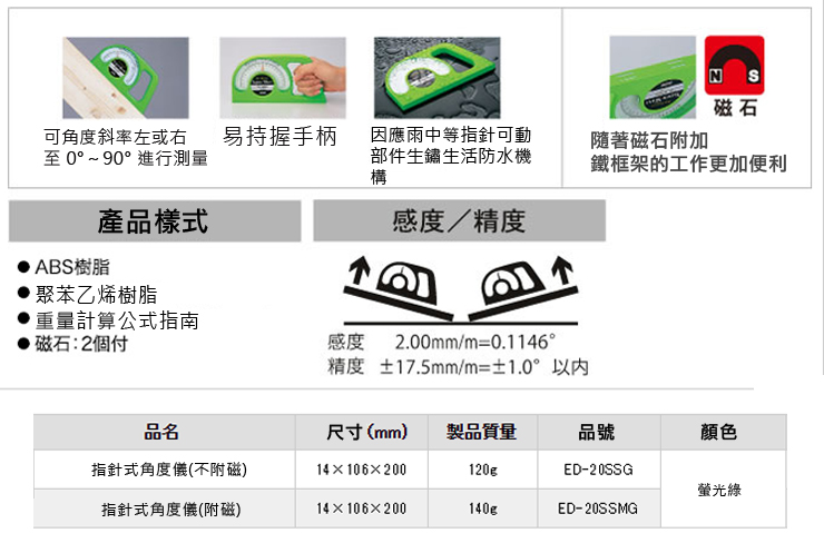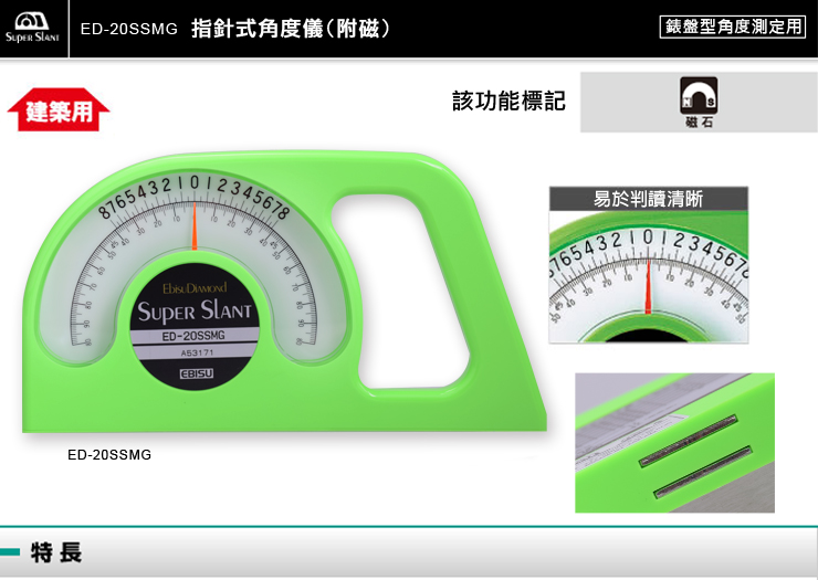 【日本EBISU】指針式角度儀 (無磁)