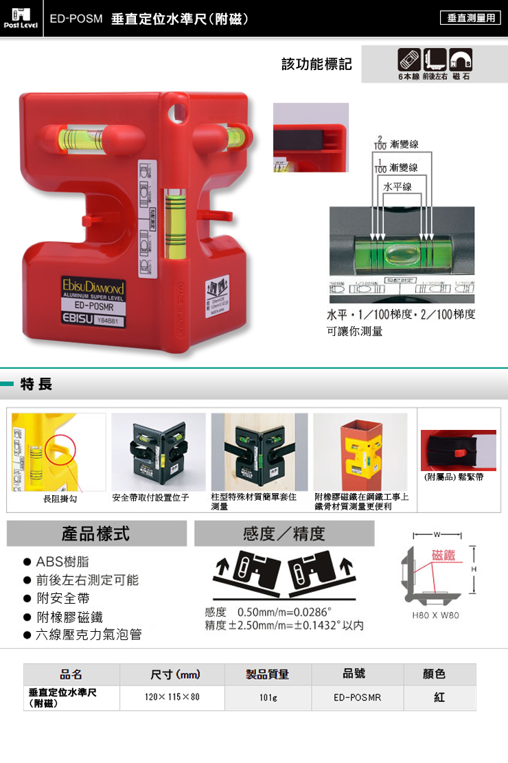 【日本EBISU】垂直磁性定位水平尺