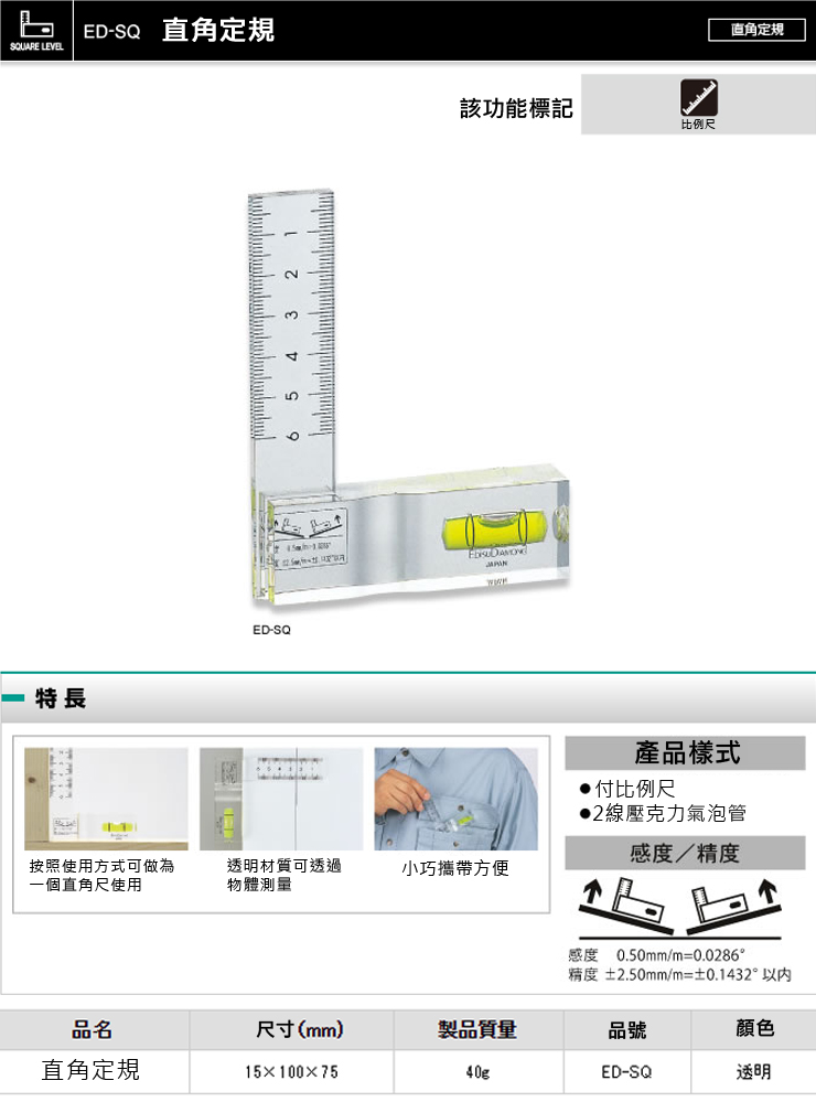 E-BASE 百駒尺業 鐵工角尺 清晰蝕刻 正面全公制 反面全英制 1個
