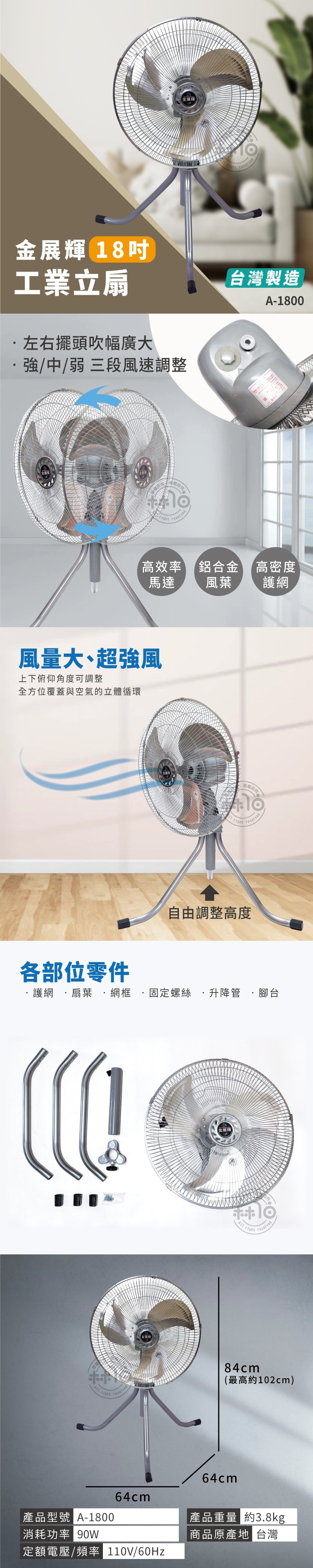 金展輝18吋擺頭工業立扇 A-1811_廠商直送