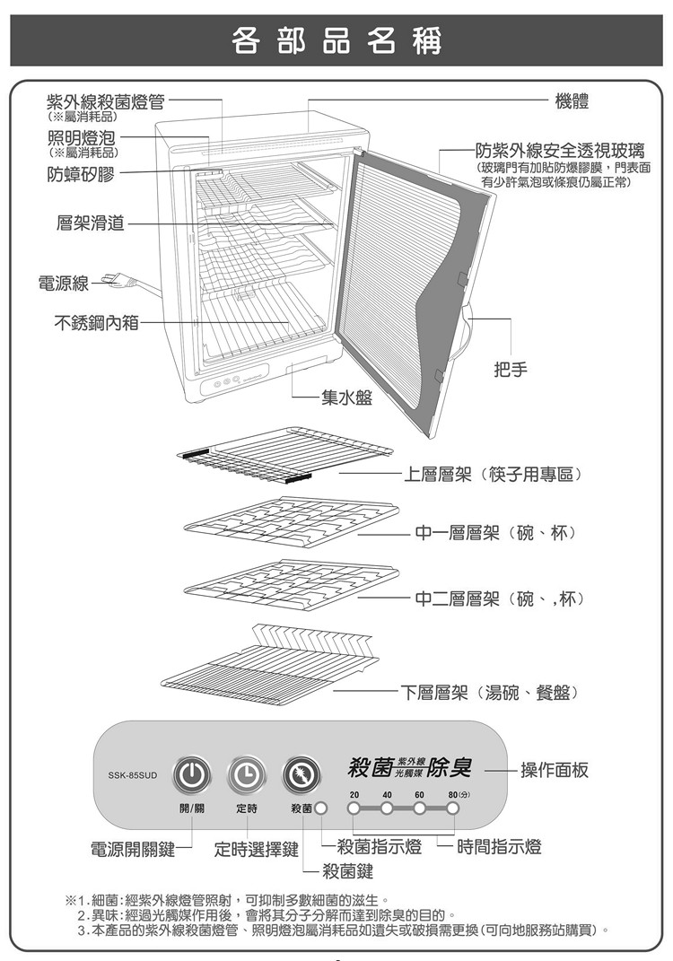 ◆UV殺菌燈開門自動關閉/關門自動啟動,避免眼睛傷害