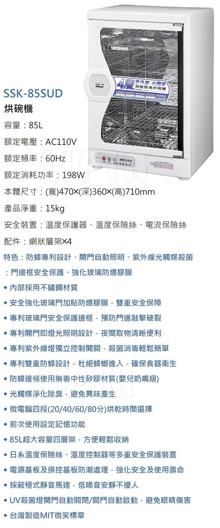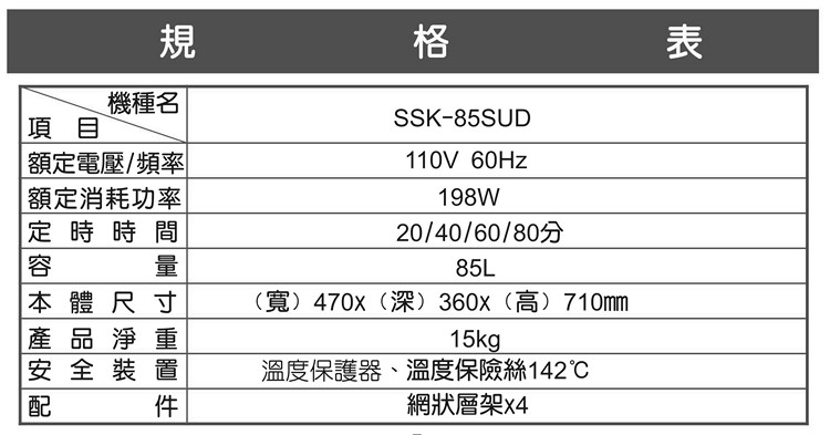 SANLUX台灣三洋85L四層微電腦定時烘碗機SSK-85SUD