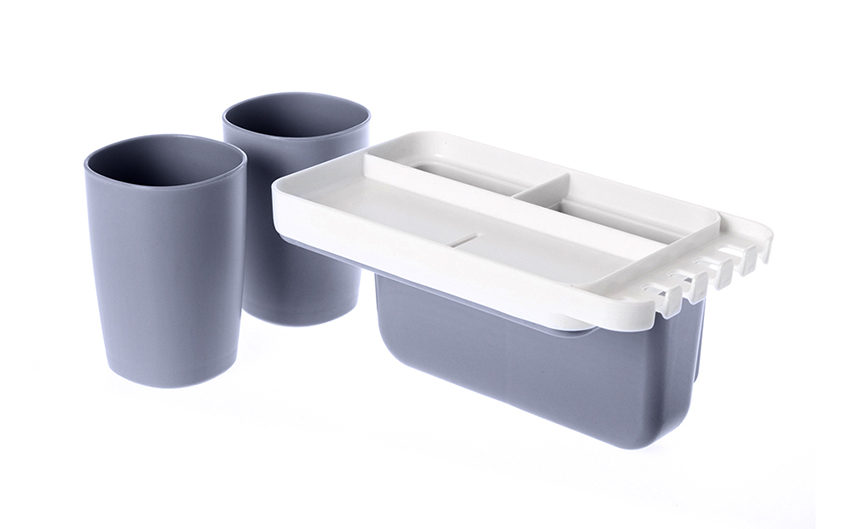 浴室置物架 牙刷杯架 白色 75 x 75 x 140mm 1組