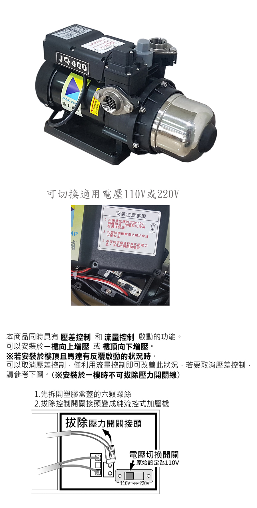 2. 加壓馬達如置於室外應以防雨之物件遮蓋以免日曬雨淋。