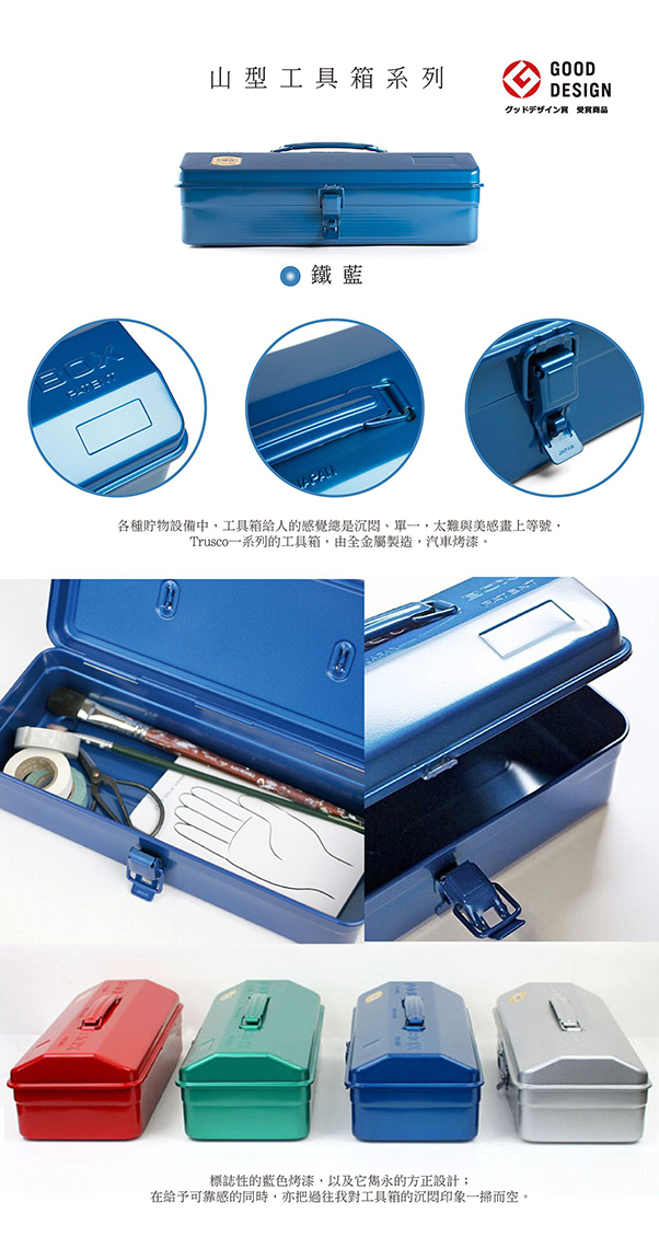 TRUSCO 山型工具箱 全金屬製作 質感收納 經典 鐵藍色 1個
