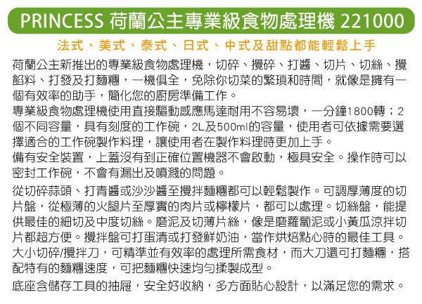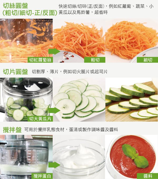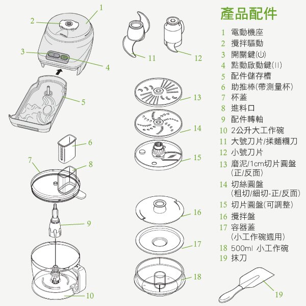◆8Cup(2L)及1.4Cup(0.5L)兩種尺寸調理碗(大刀配大碗、小刀配小碗)
