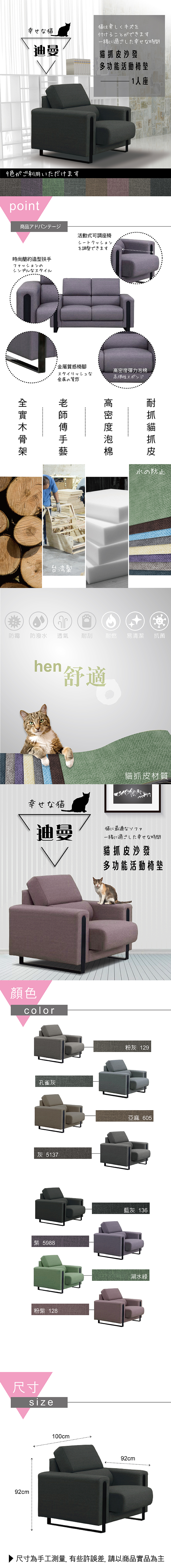 文創集 梅卡爾雙色貓抓皮革單人座沙發椅-93x85x70cm免組