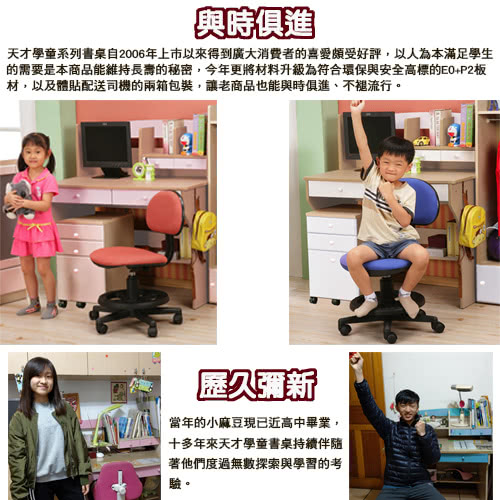 本商品與日本同步流行,依照東方學童的身材所設計,加上日系精緻多機能的血統,讓您的小孩能夠擁有一套完全屬於自己的學習園地,從小培養良好的學習興趣,贏在起跑點!《天才學童》全系列商品的本體採用高質感白橡色外觀,容易與各式家具搭配,面板活潑配色共有四種顏色可供選擇,可依您的需要與喜好選購!