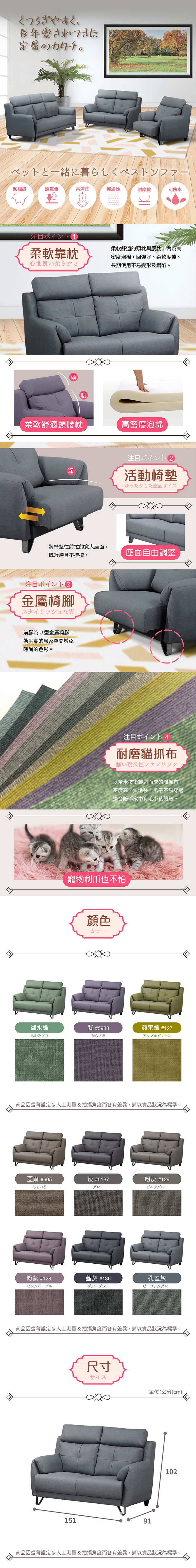 【歐風別館】洋基貓抓布皮沙發--三人座【北歐風~基隆至台中免運費】