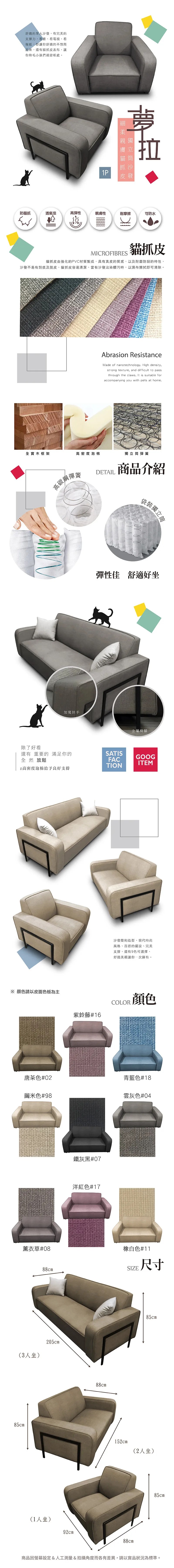 【UHO】莉亞-貓抓皮單人沙發 -運費另計214淺灰